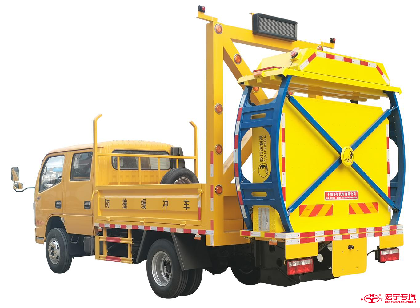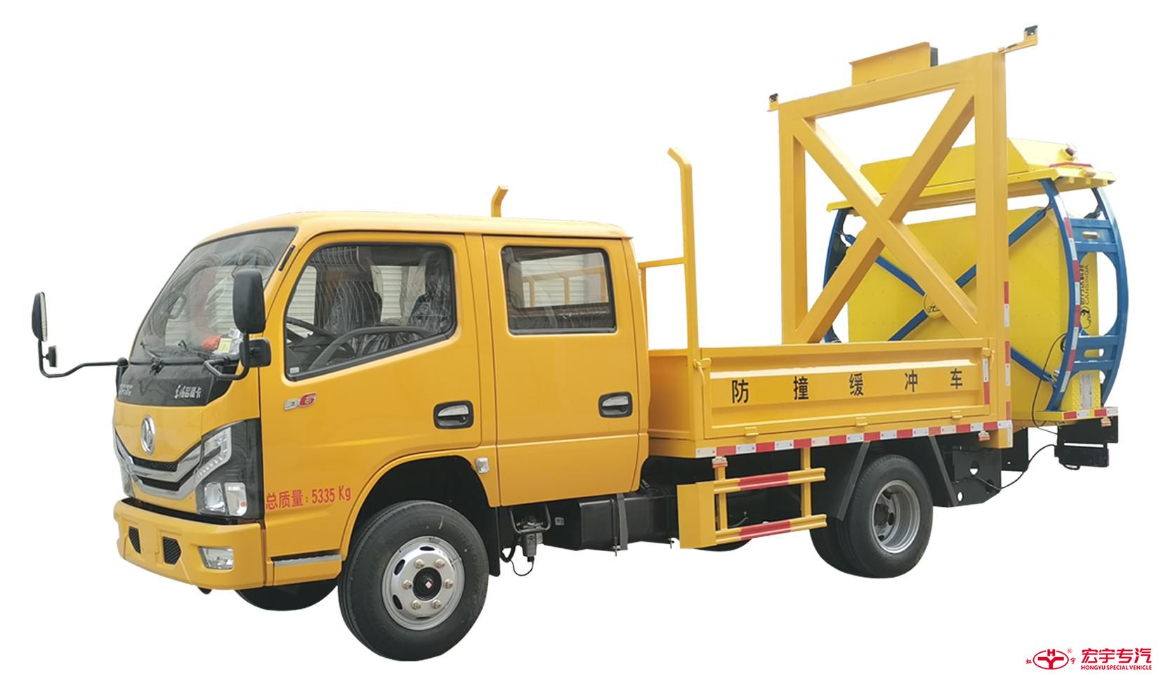 东风小多利卡D6防撞缓冲车采用东风小多利卡底盘。防撞缓冲模块升降采用液压控制,过程平稳、安全、机械化作业程度高,操作方便。防撞缓冲模块整体采用国产乾行达公司技术产品70K防撞缓冲模块。太平洋保险承保。